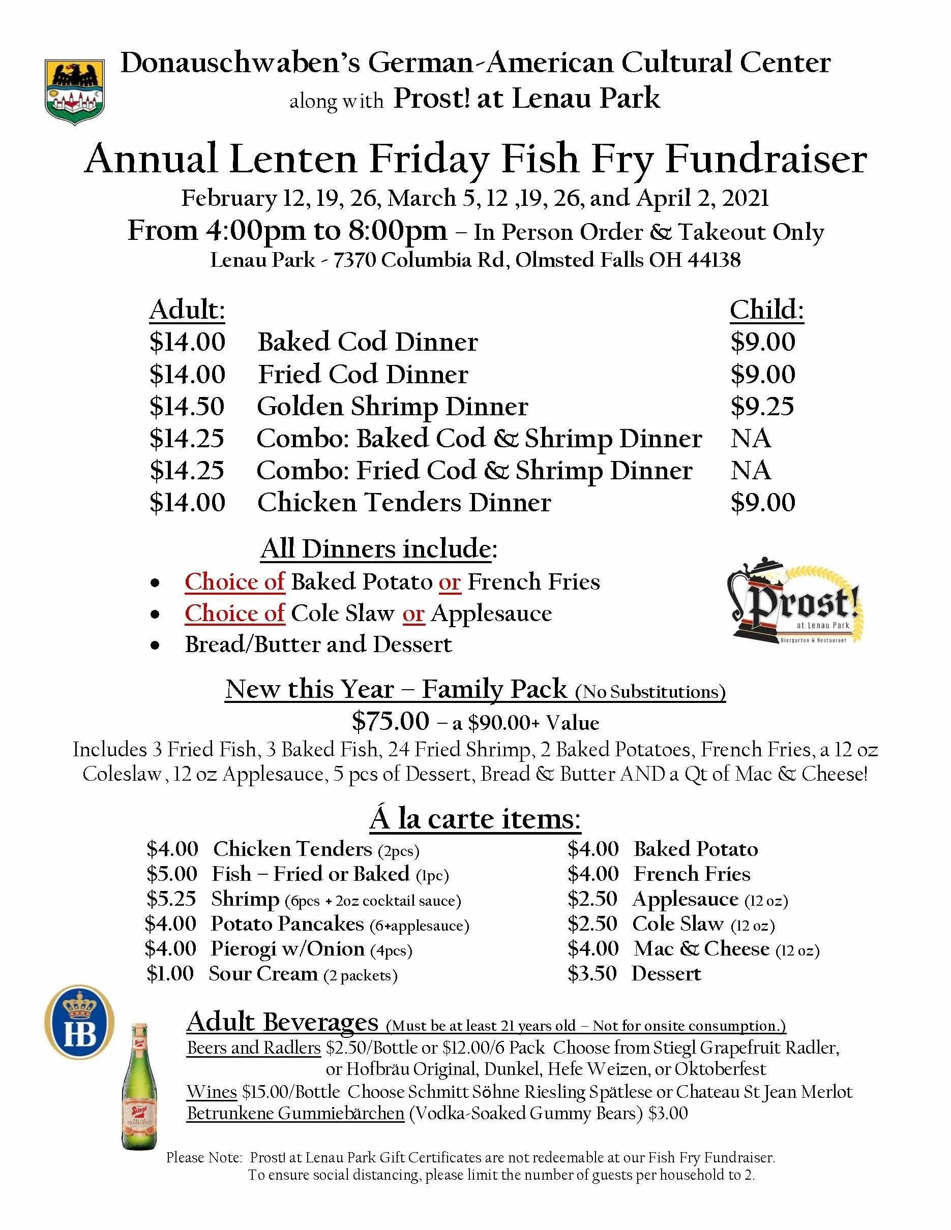 Fish Fry Friday, April 2, 2021 4:00 PM 8:00 PM Donauschwaben’s German-American Cultural Center 7370 Columbia Road Olmsted Falls, OH, 44138 United States (map) Google Calendar ICS